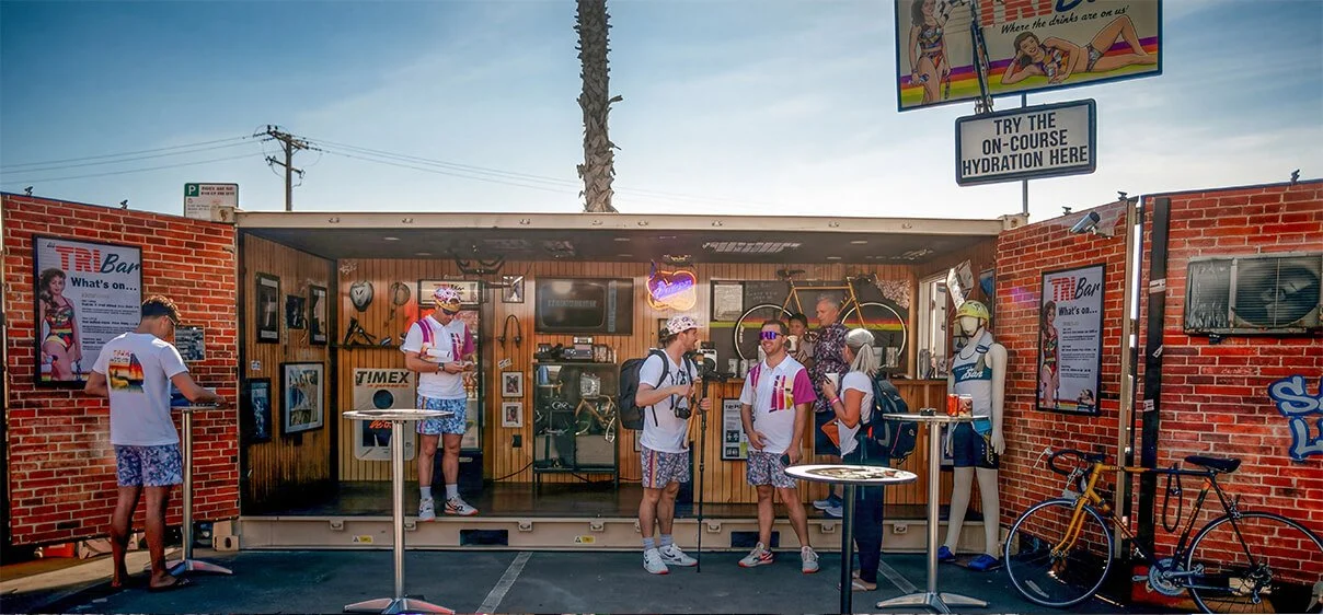 We partnered with Precision Hydration (UK) to create a mobile 1980s sports bar activation for Ironman events.